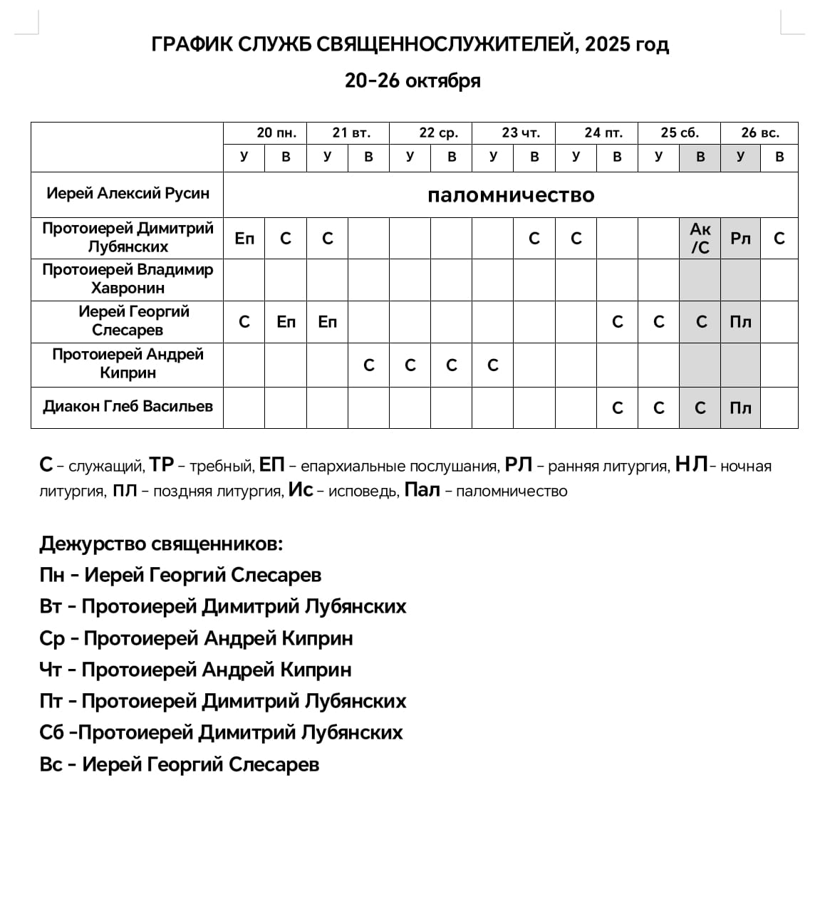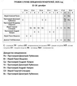 График священнослужителей График священнослужителей Поделиться:ВКонтактеTwitterTelegramОдноклассникиМой Мир